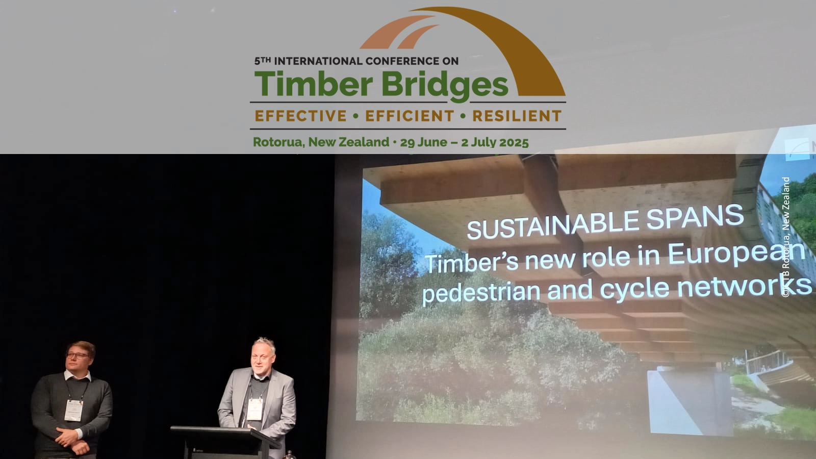 Lecture: 5th International Conference on Timber Bridges Rotorua – NZL July 2025A great experience: at the 5th International Conference for Timber Bridges in Rotorua/New Zealand, Frank Miebach and Lukas Osterloff were able to speak about current projects of the Miebach engineering office. ICTB 2025 »